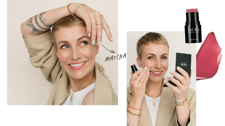 Lächle und trage unseren Cream Blush Rosewood Glow auf den höchsten Punkt deiner Wangen auf und verblende ihn zum Beispiel mit unserem #11 Creme Rougepinsel. Je nach Bedarf kannst du unseren Cream Blush auch auf die Konturen deiner Wangenknochen auftragen und mit unserem Pinsel zu deinen Schläfen hin verblenden.