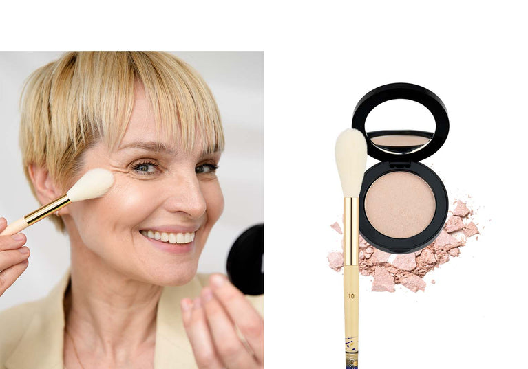 Nicht nur für das Auge, sondern auch für die Wangen eignet sich unser Pressed Highlighter wunderbar – hier in Light Glow. Trage auf den höchsten Punkt deiner Wangen und deinen Wangenknochen den Highlighter mit unserem Pinsel #10 auf, um ein besonders softes Ergebnis zu erzielen.